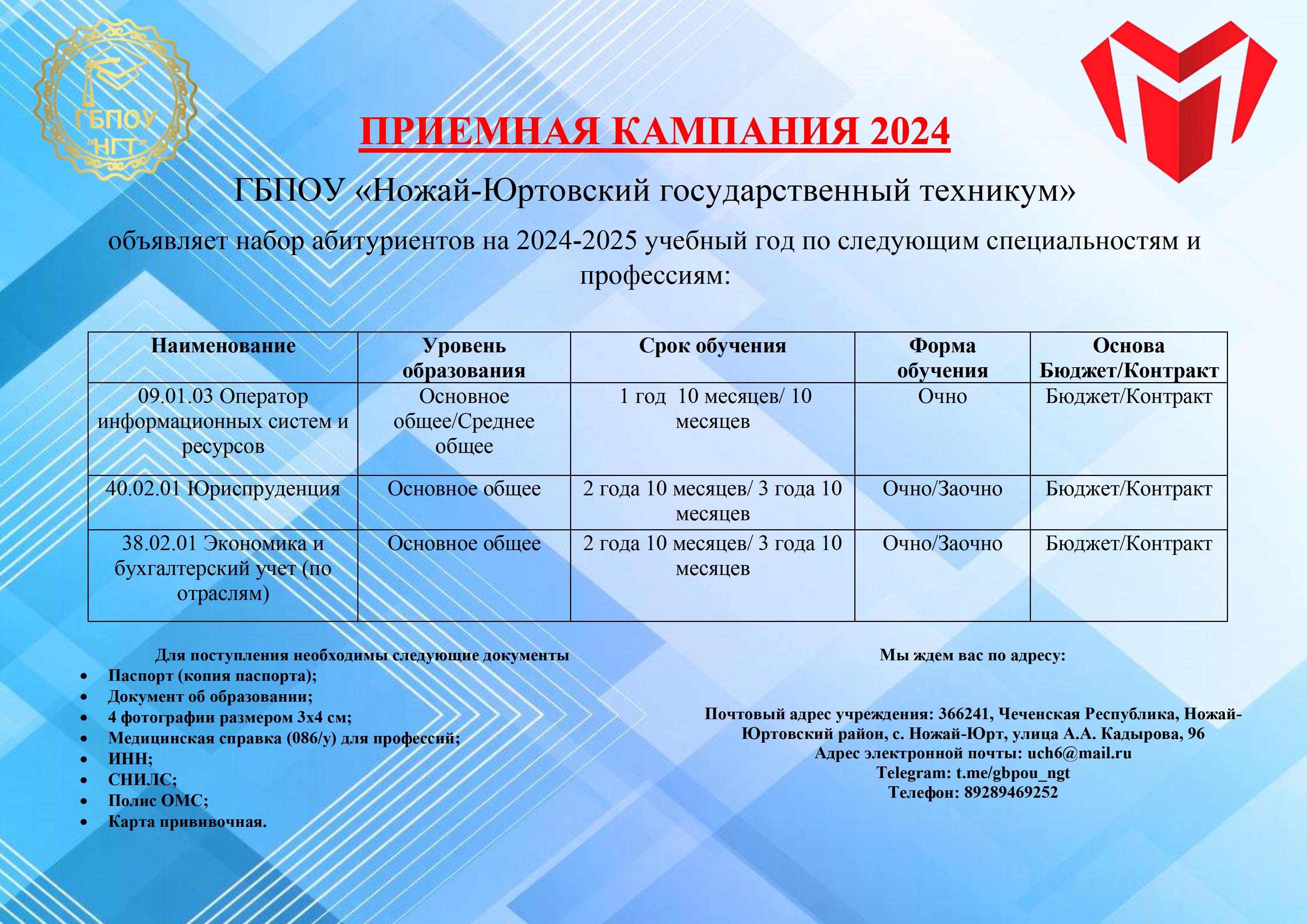 Приемная кампания 2025