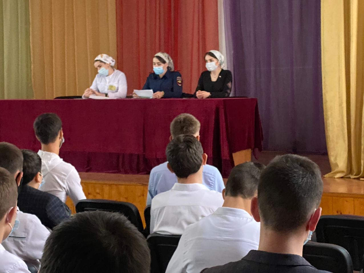 20.10.2020Сегодня провели информационно-разъяснительную работу с обучающимися 1-го и 2-го курсов ГБПОУ "Ножай-Юртовский государственный техникум", при участии правоохранительных органов и органов здравоохранения, о необходимости прохождения социально-психологического тестирования, и об уменьшении отказов от участия в социально- психологическом тестировании.