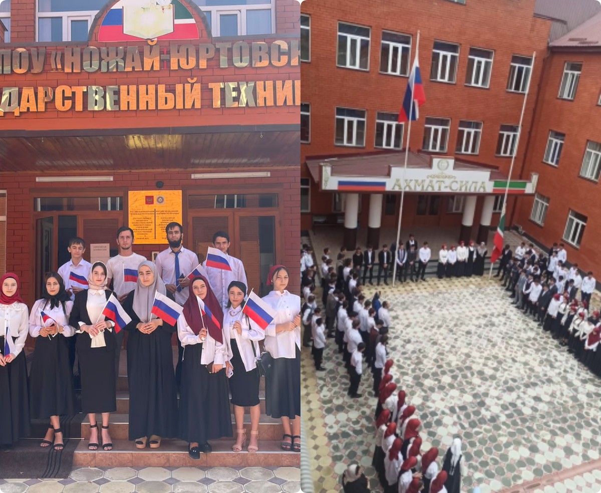 Сегодня 05.09.2022г. в нашем ГБПОУ «Ножай – Юртовский государственный техникум» состоялась церемония поднятия флагов РФ и ЧР и исполнения государственного гимна.