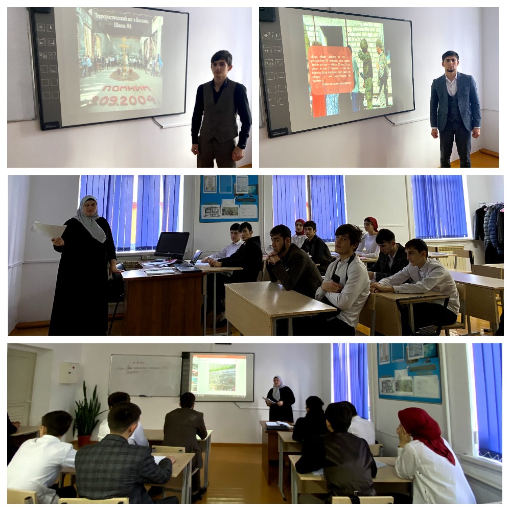 25.10.202225.10.2022 г. в нашем ГБПОУ"Ножай- Юртовский техникум" было проведено мероприятие: "Трагические события в Беслане". Мероприятие носило познавательный и информативный характер, особый интерес вызвало у студентов, которые хотели бы видеть себя в будущем военными. Данное мероприятие имело значение для воспитания патриотических чувств у обучающихся.