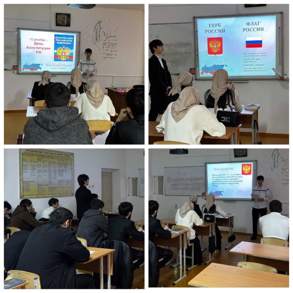 10.12.2024в ГБПОУ "Ножай-Юртовский государственный техникум " с обучающимися преподавателем правовых дисциплин был проведён урок, ко Дню Конституции РФ на тему: " Законы будем изучать, свои права мы будем знать"