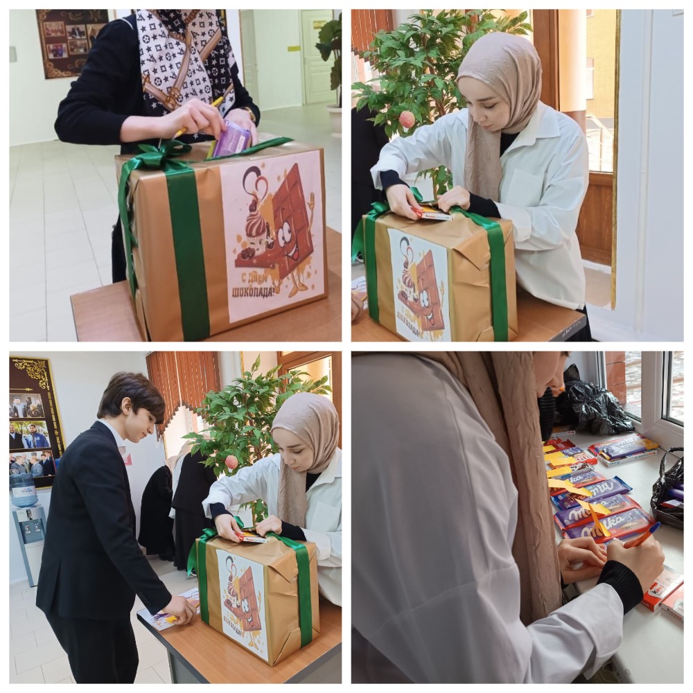 19.12.2024в ГБПОУ "Ножай-Юртовский государственный техникум " состоялось CHOCOLATE DAY - день ШОКОЛАДА! К участию были приглашены все обучающиеся и работники техникума.Суть мероприятия: У входа техникума была установлена коробка, в которую каждый желающий анонимно положить шоколад. ВАЖНО БЫЛОНа шоколаде обязательно ПРИКРЕПИТЬ листок с указанием: ФИО получателя.