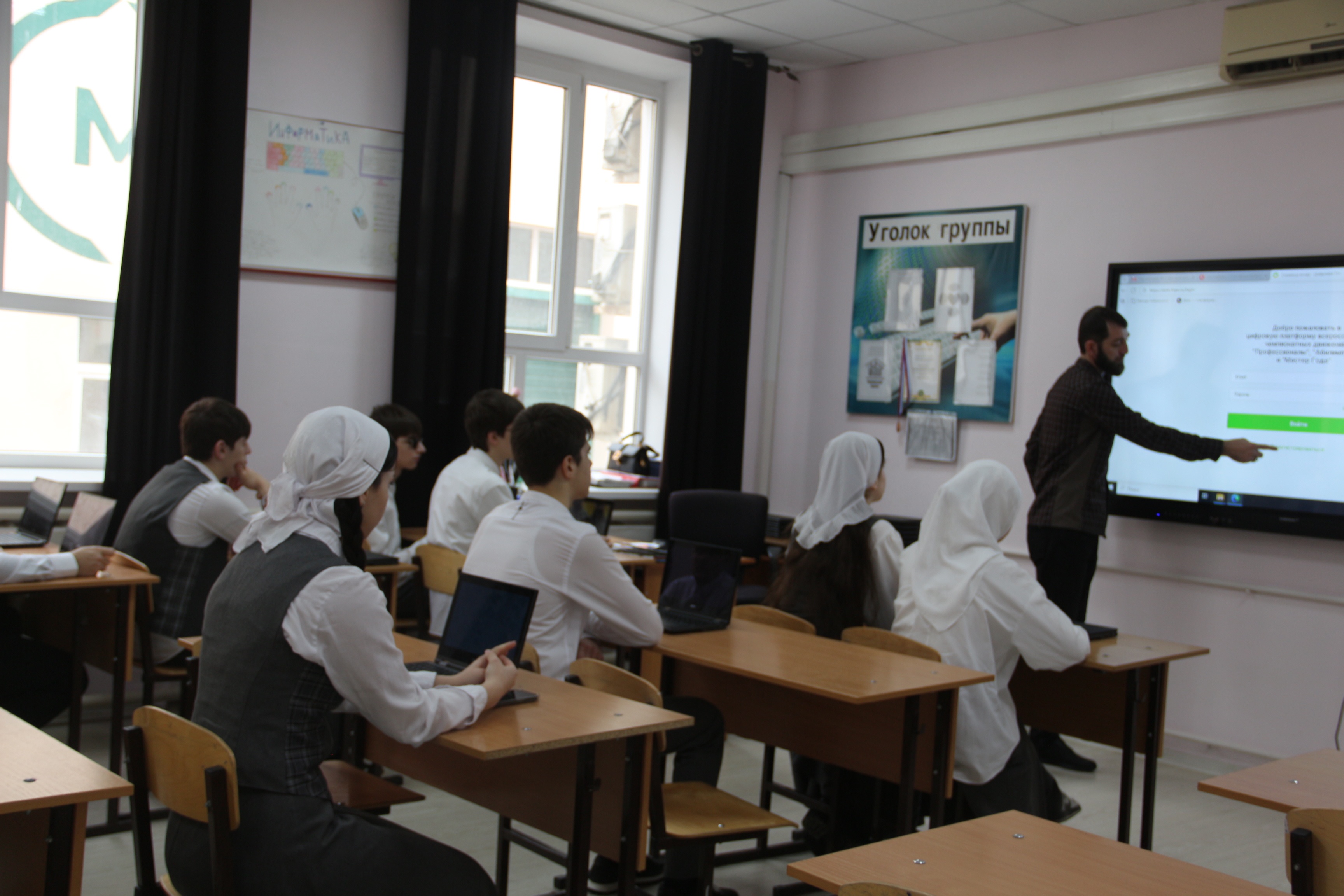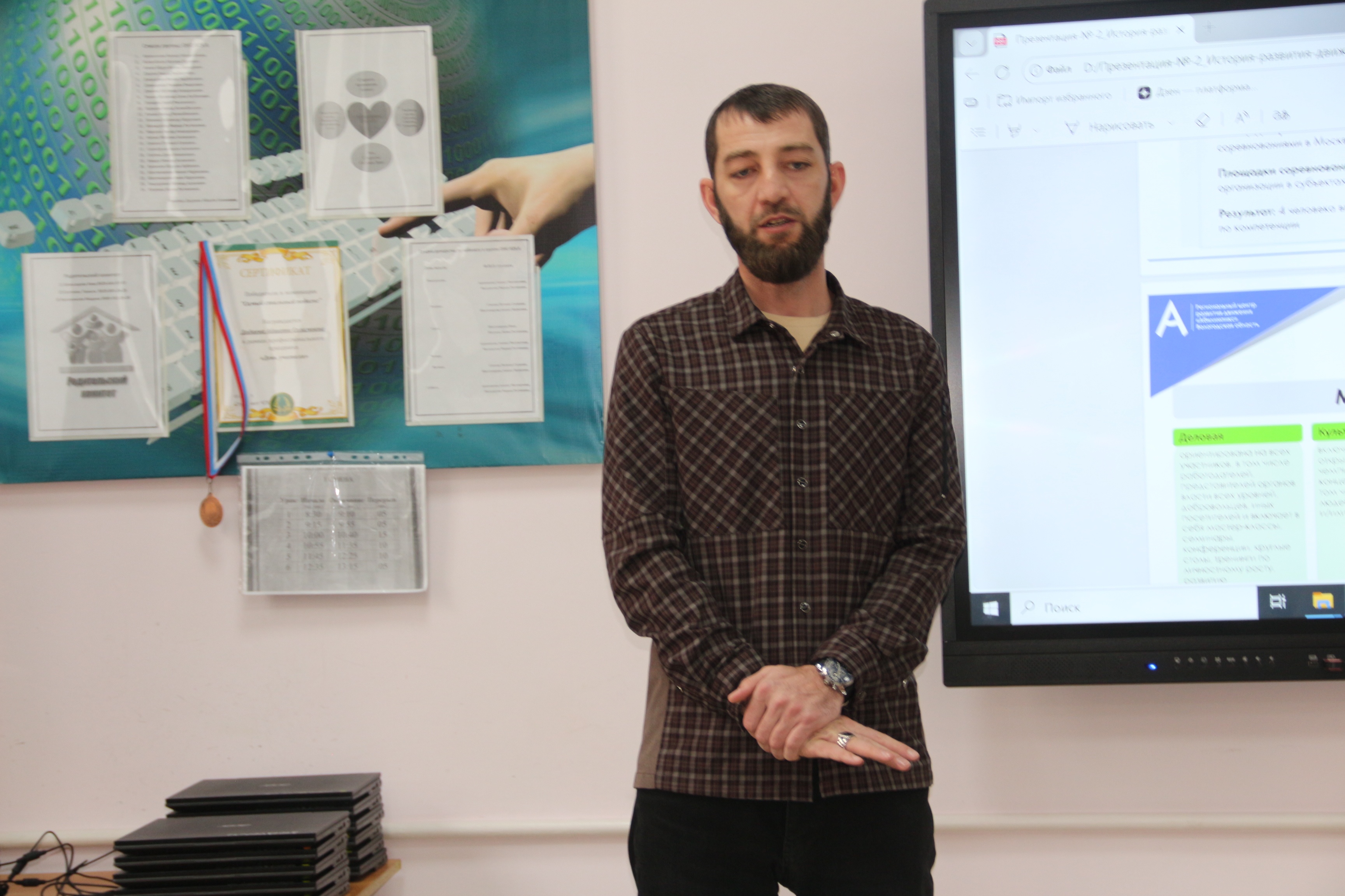 Руководитель ЦРД Р.М. Герасиев провел мастер - класс о движении Абилимпикс, экскурсию по учебным классам и мастерским, ознакомил участников встречи с порядком проведения регионального чемпионата в 2026 году, продемонстрировал содержание конкурсного задания по компетенции «Мастер по обработке текста» и оценочных листов. Ребята с удовольствием выслушали информацию о движении «Абилимпикс», о специальностях и профессиях, по которым ведется обучение в профессиональных образовательных организациях Чеченской Республики, ознакомились с порядком поступления.