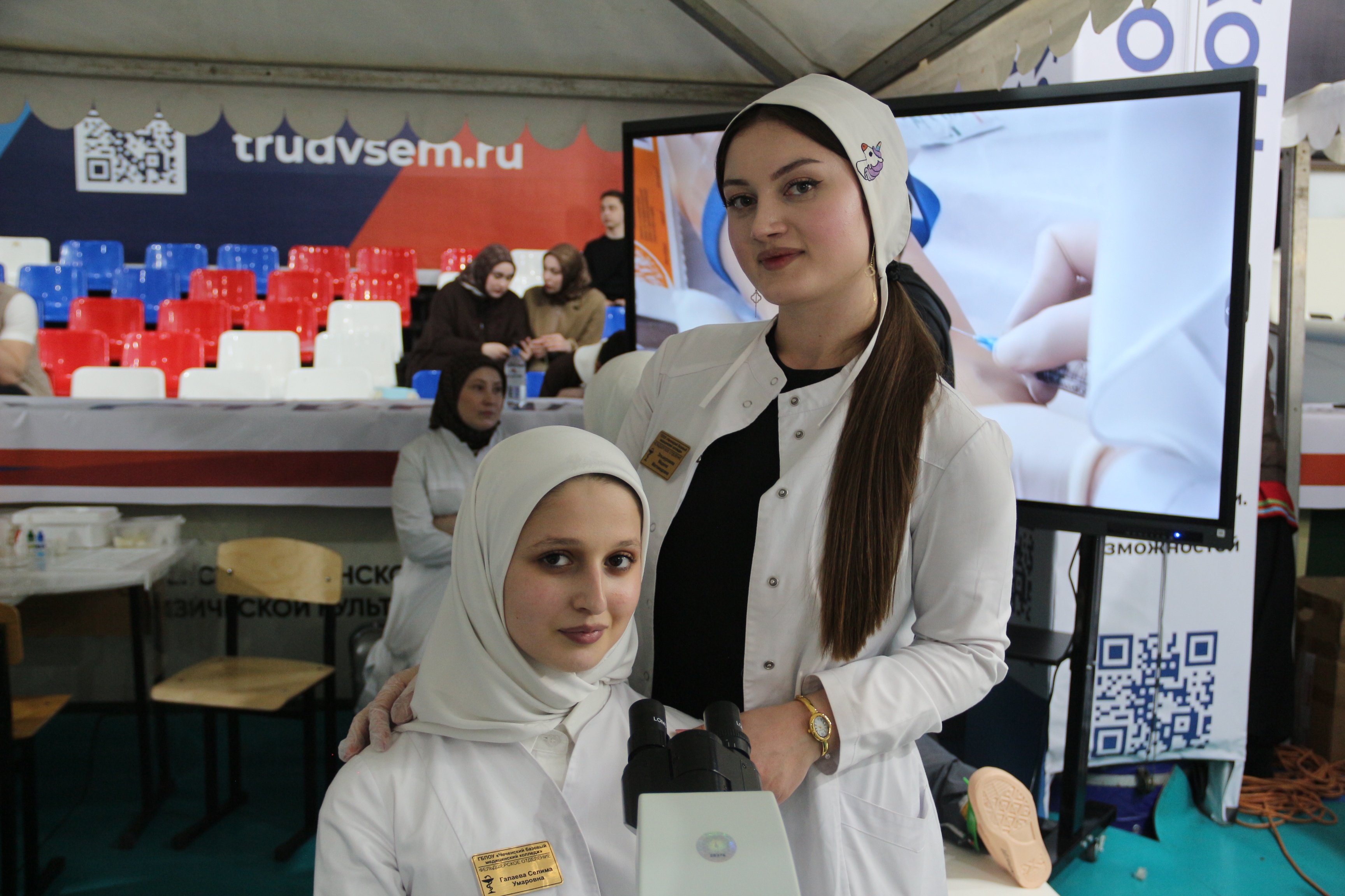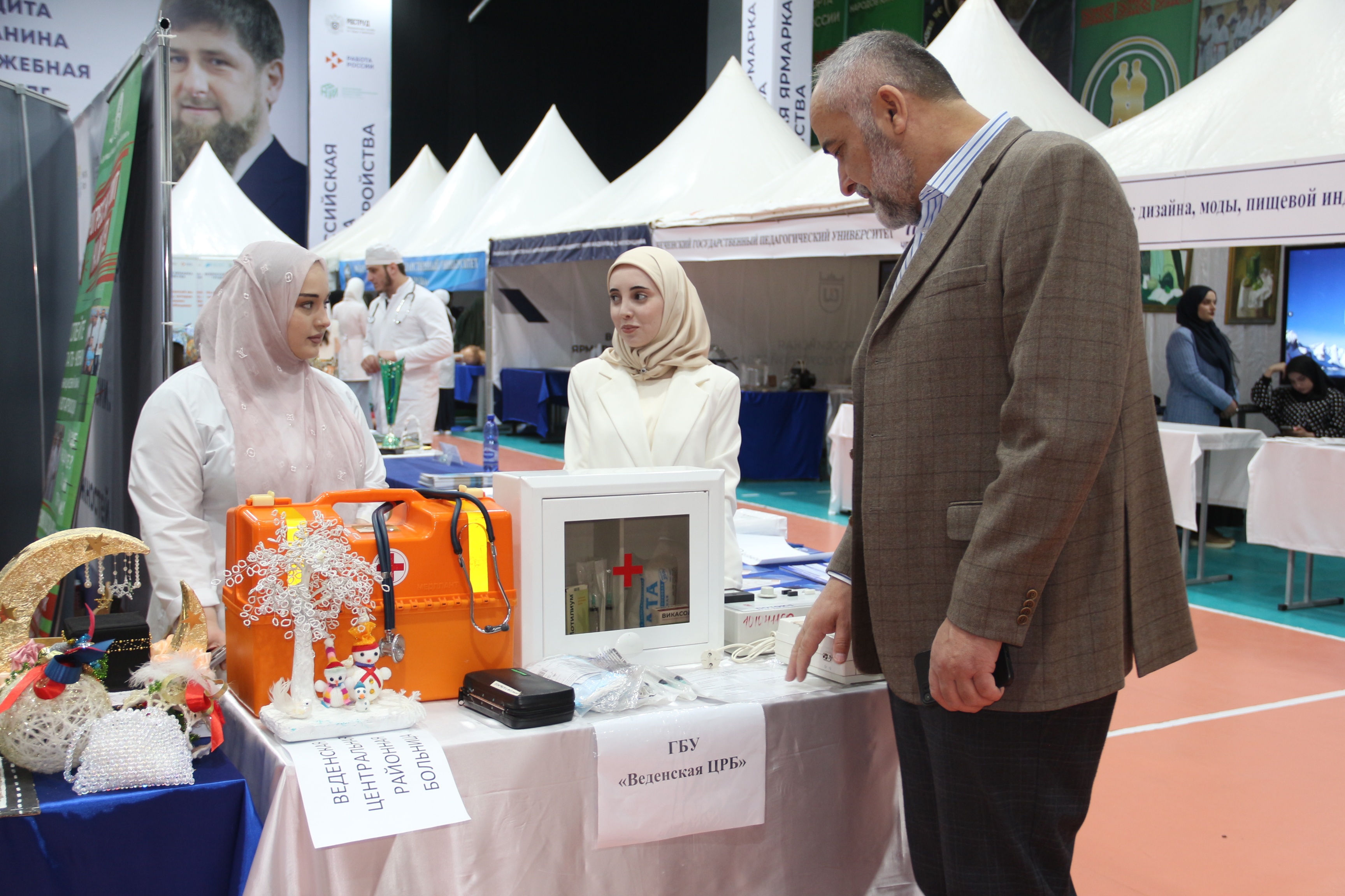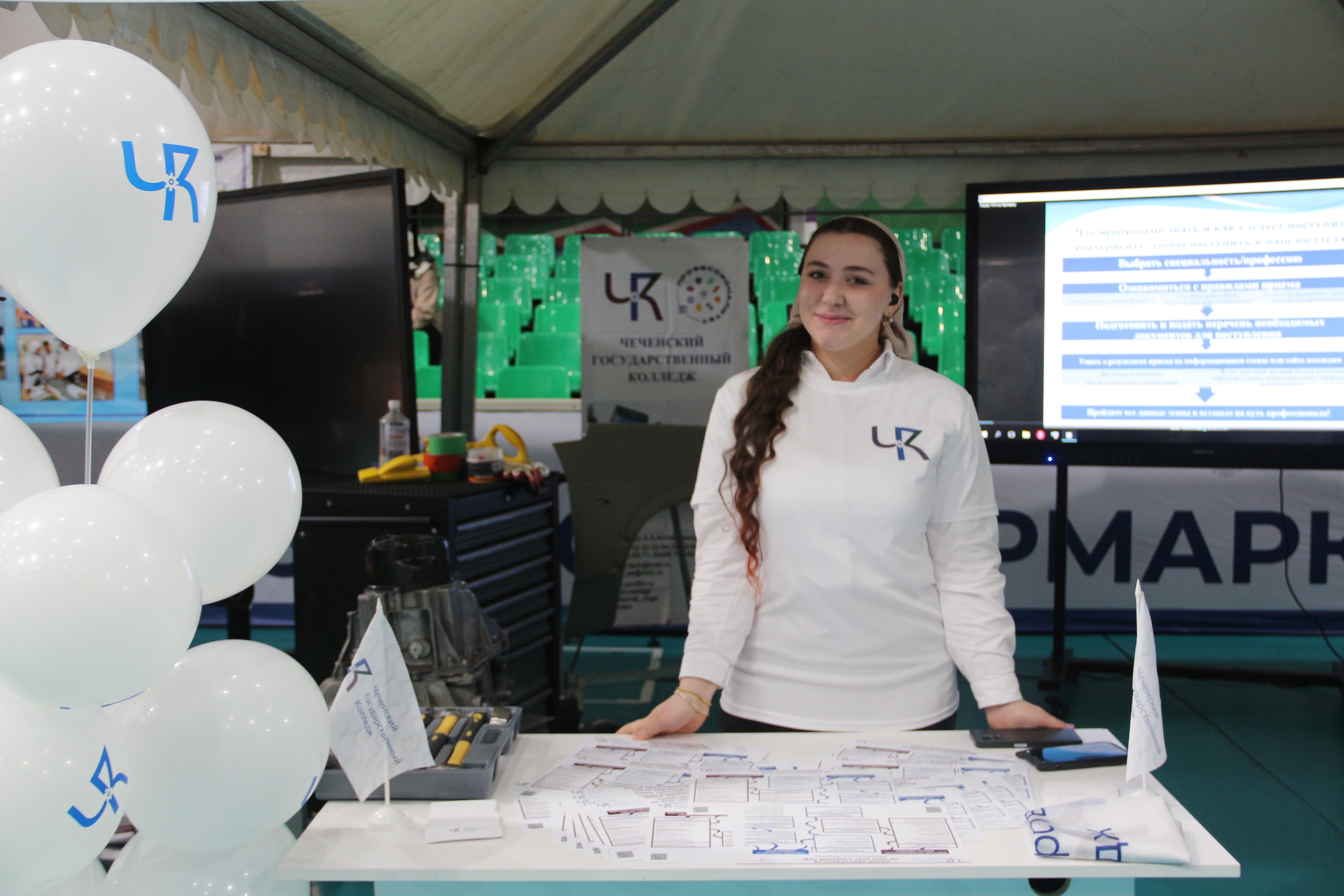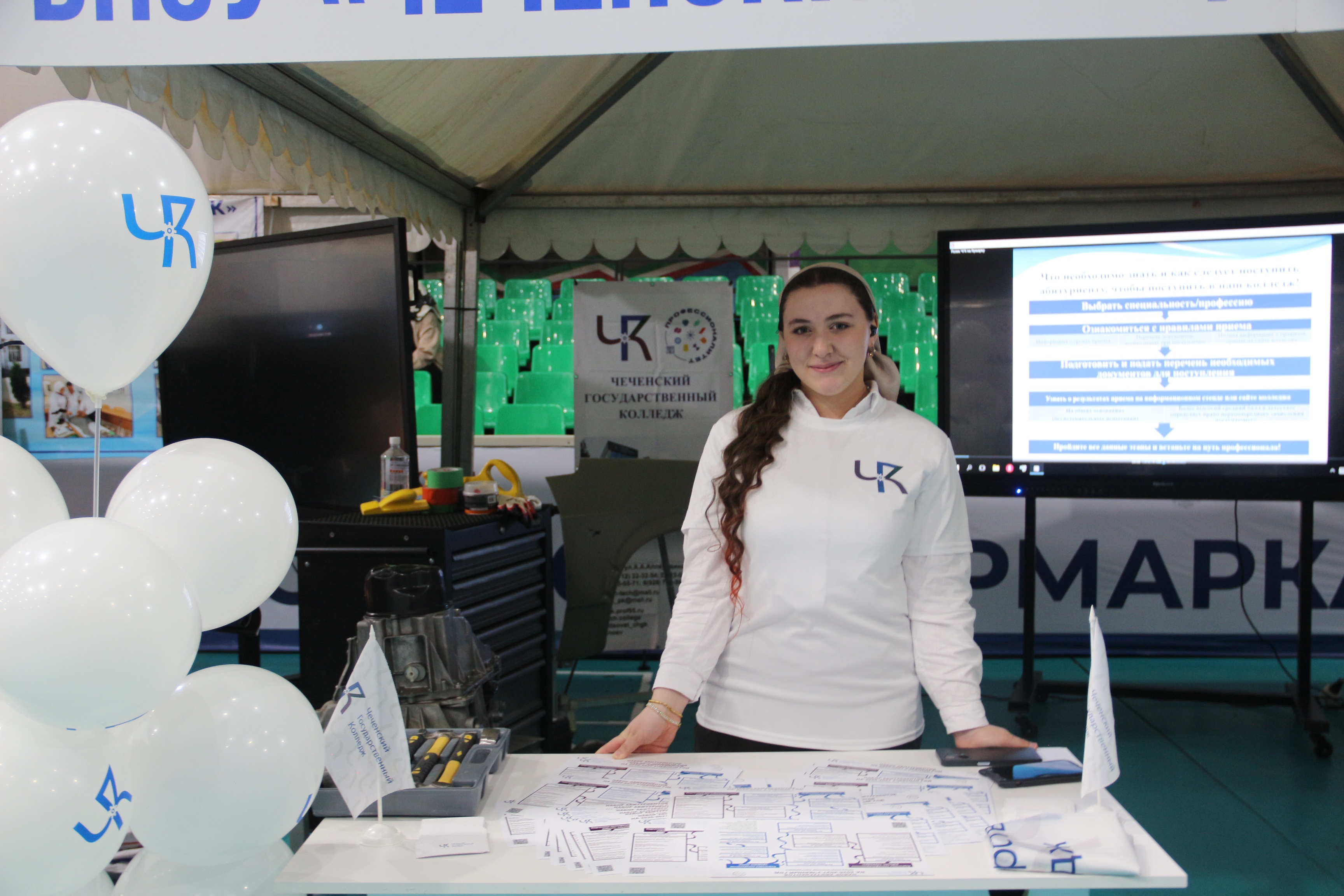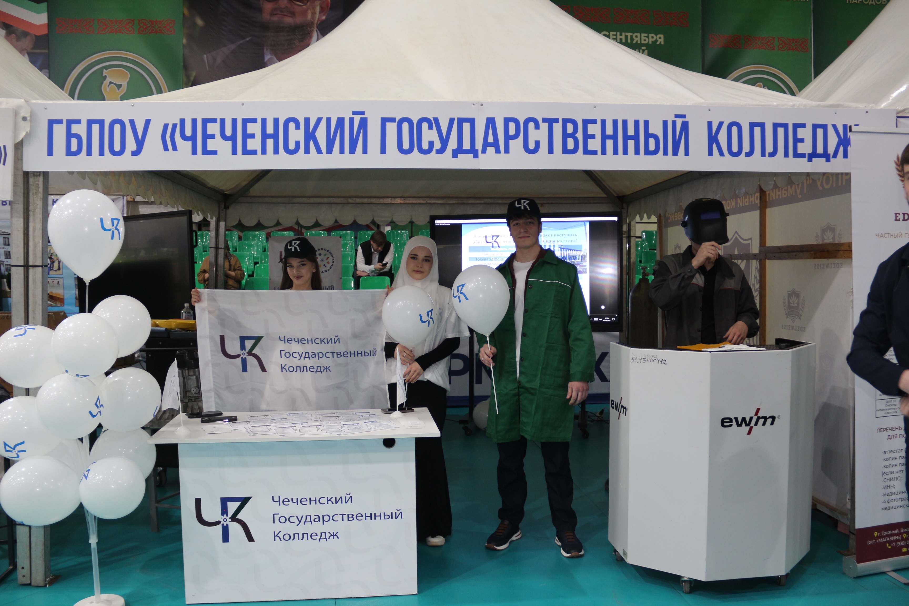 В рамках профориентационной работы, Чеченский государственный колледж провел для посетителей ярмарки мастер-классы по самым востребованным направлениям: Сварщик и Мастер по ремонту и обслуживанию автомобилей. Выпускники колледжа выступили как соискатели вакантных рабочих мест.