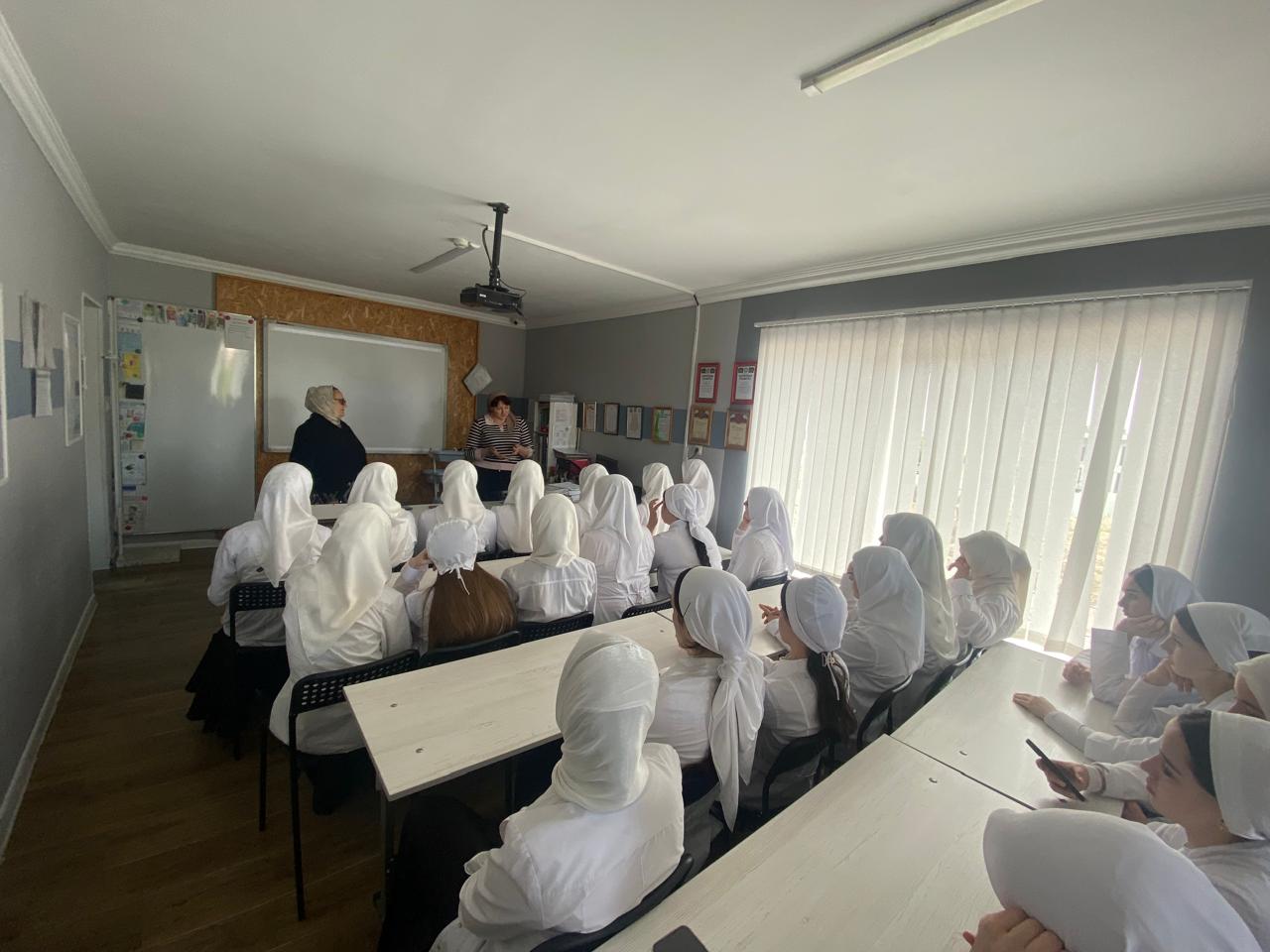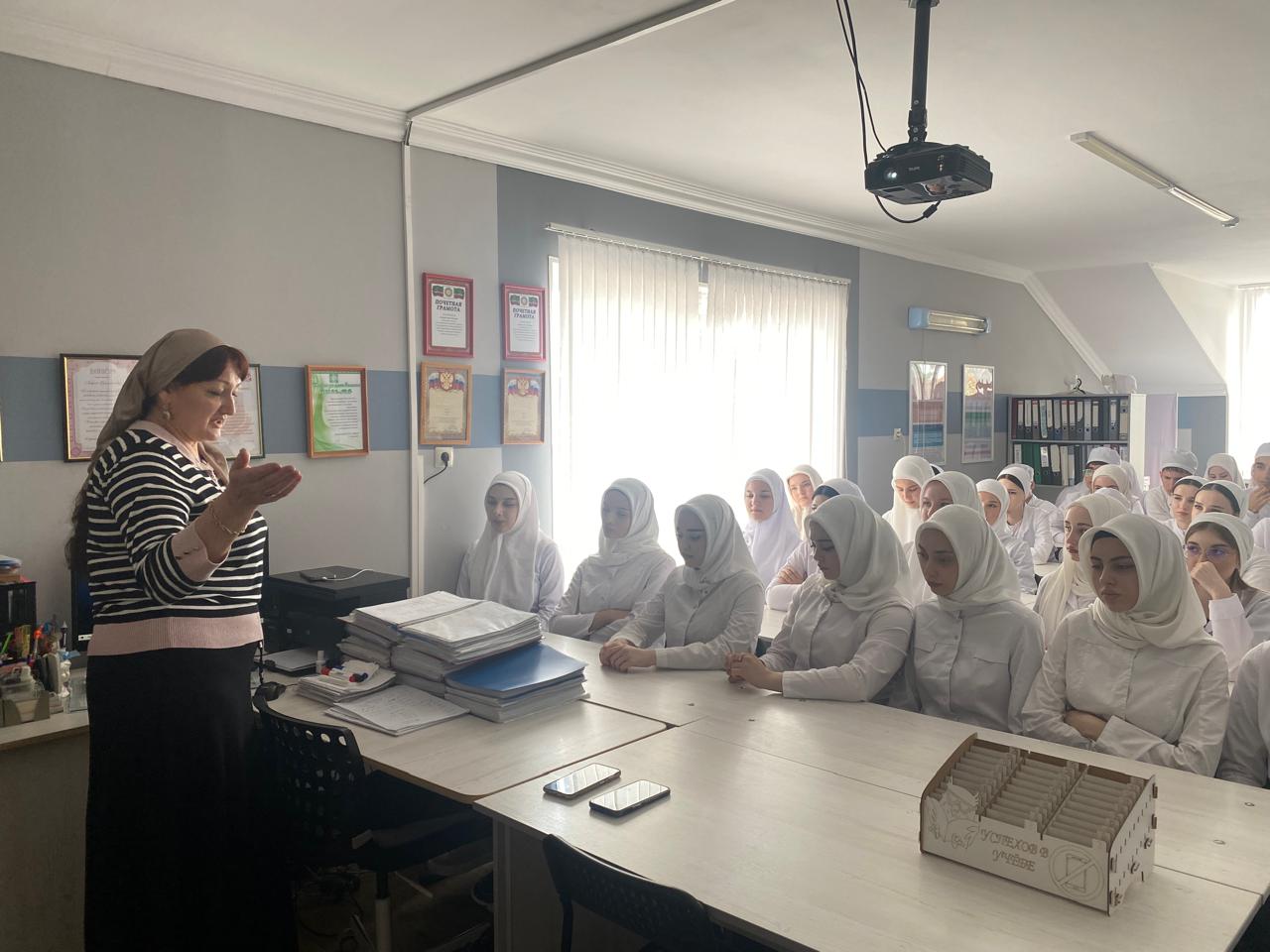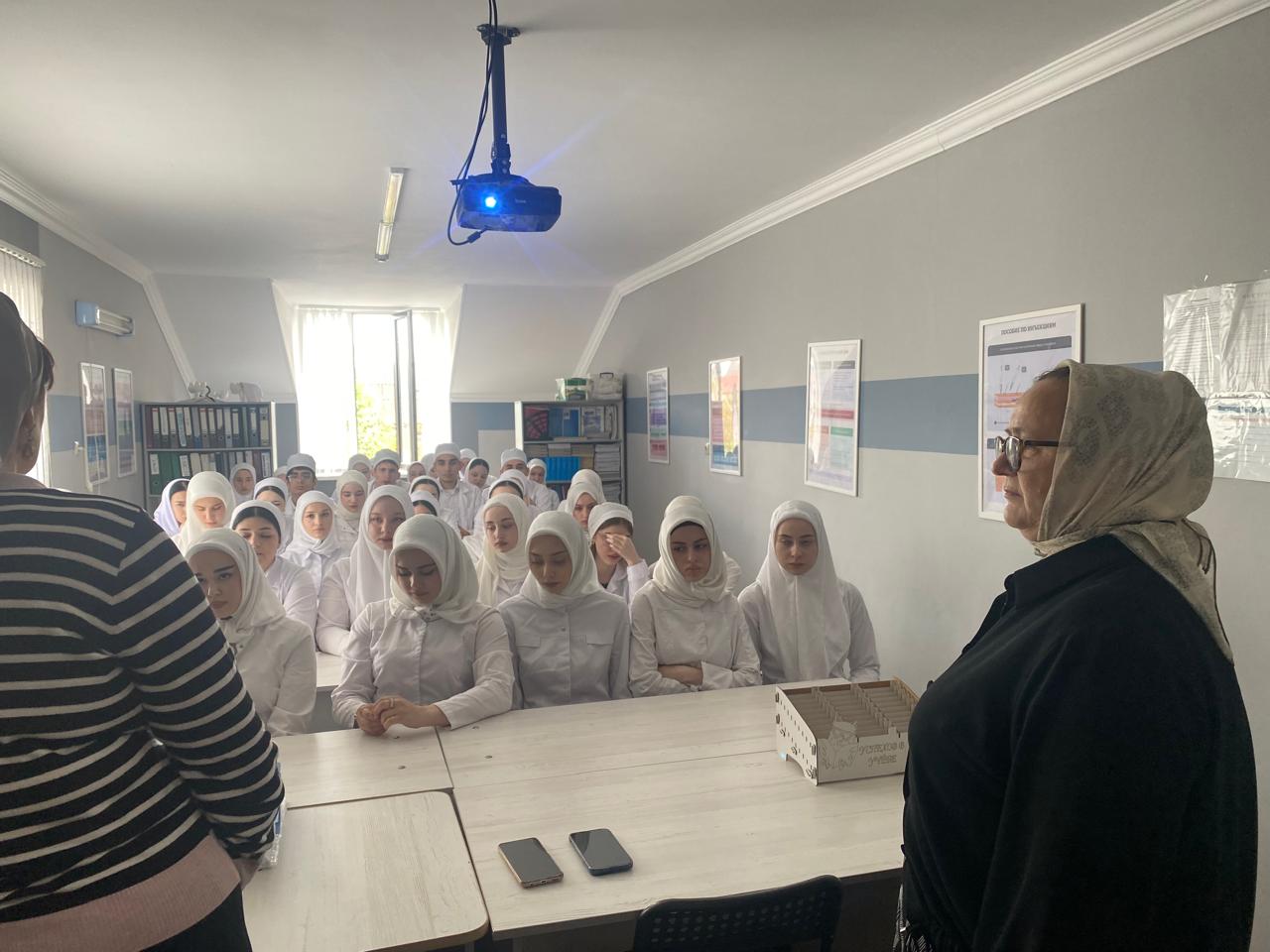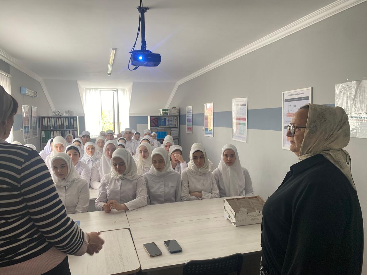 В рамках плановой профориентационной деятельности 27 апреля состоялась встреча преподавателей биолого-химического факультета, профессора кафедры клеточной биологии, морфологии и микробиологии Джамбетовой П.М. и доцента кафедры физиологии человека и животных Дадаевой Х.Х. со студентами ЧПОУ «Гуманитарный колледж Эдельвейс».