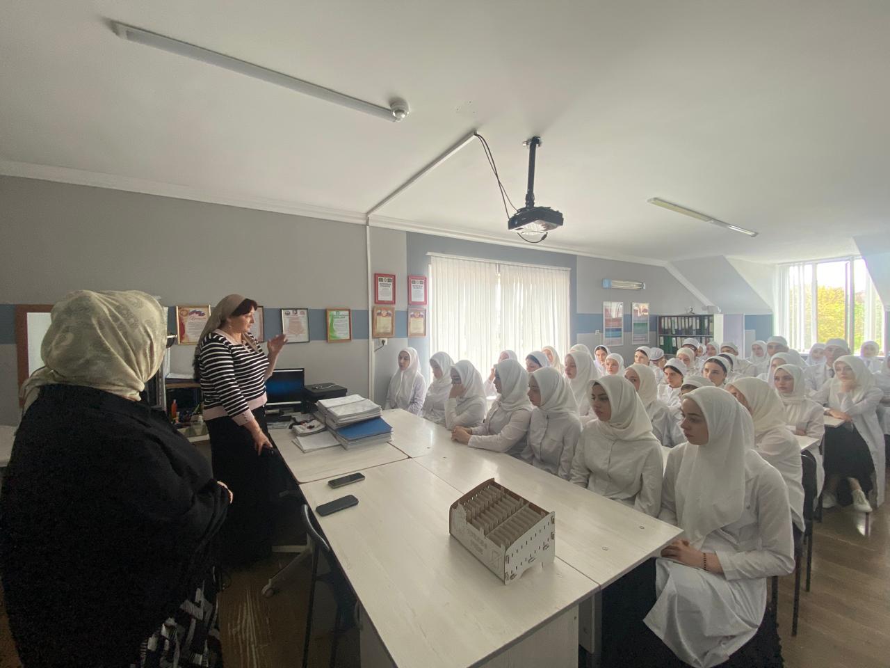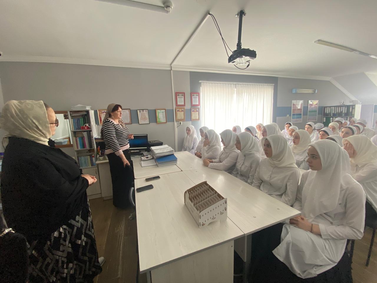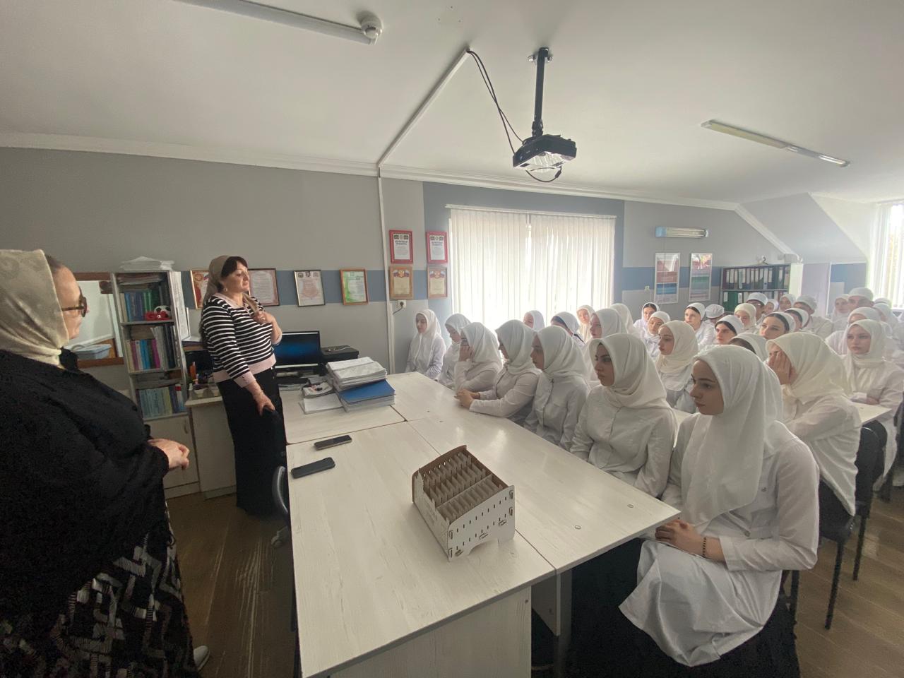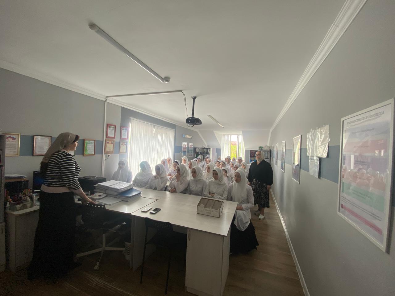 В рамках плановой профориентационной деятельности 27 апреля состоялась встреча преподавателей биолого-химического факультета, профессора кафедры клеточной биологии, морфологии и микробиологии Джамбетовой П.М. и доцента кафедры физиологии человека и животных Дадаевой Х.Х. со студентами ЧПОУ «Гуманитарный колледж Эдельвейс».
