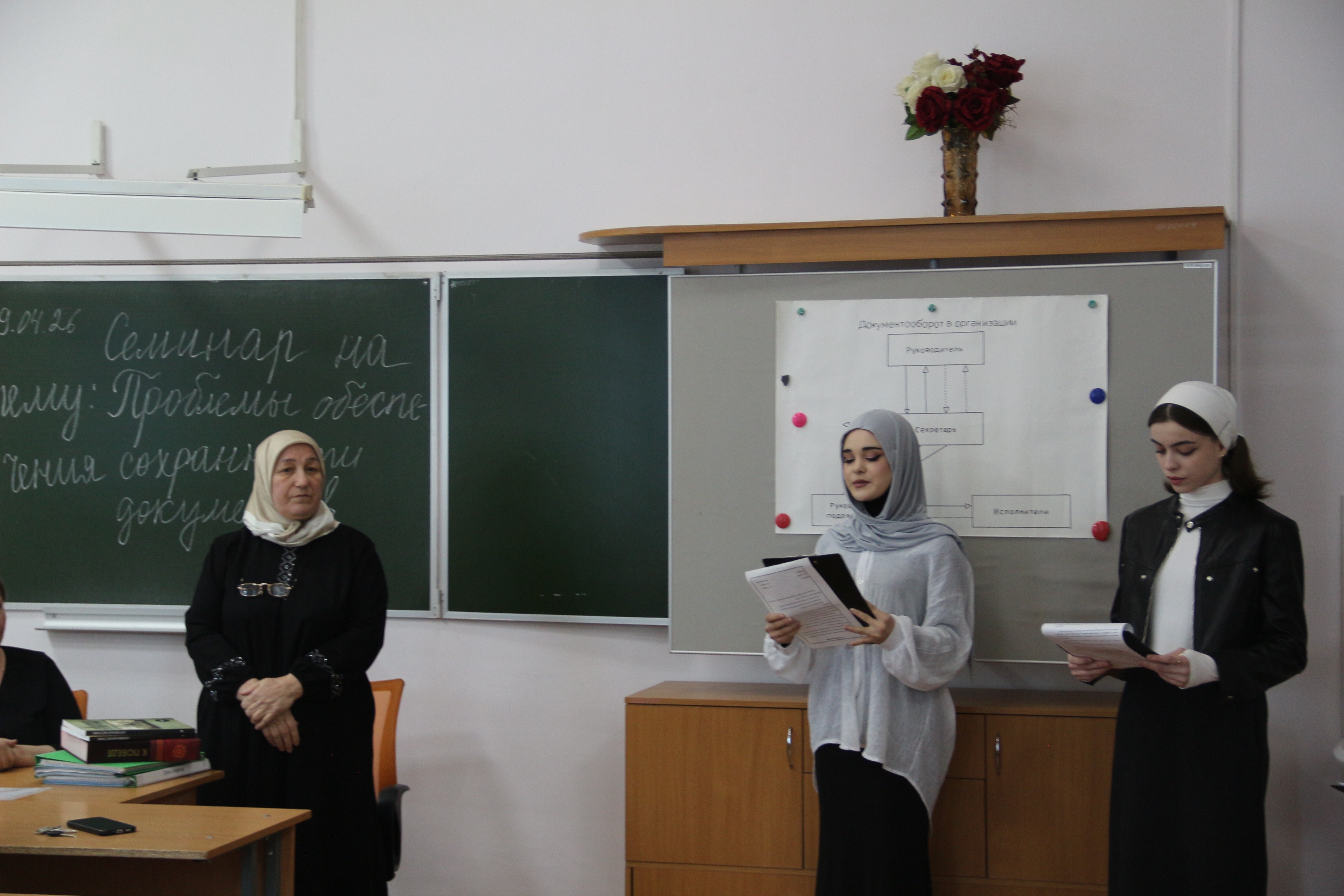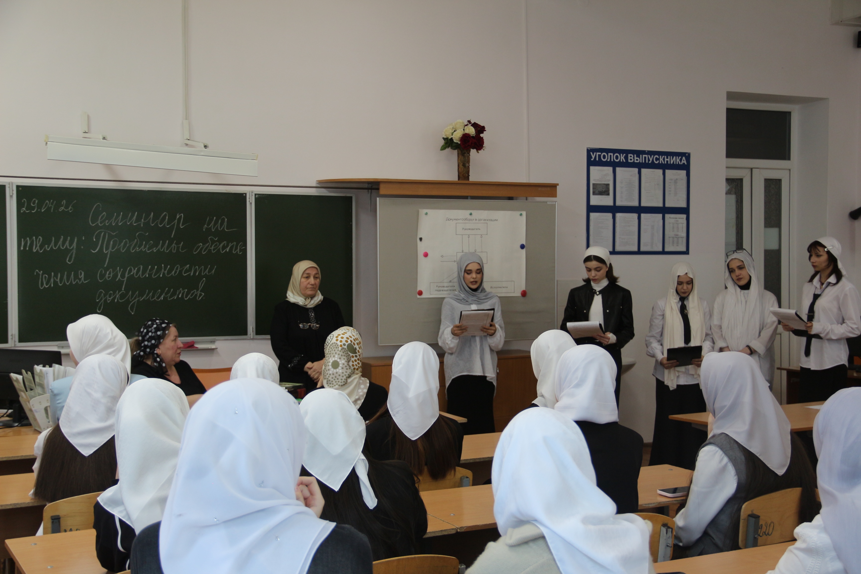 29 апреля в Чеченском государственном колледже прошел Семинар на тему «Проблемы обеспечения сохранности архивных документов», приуроченный к Предметной неделе Документационного обеспечения управления и архивоведения.